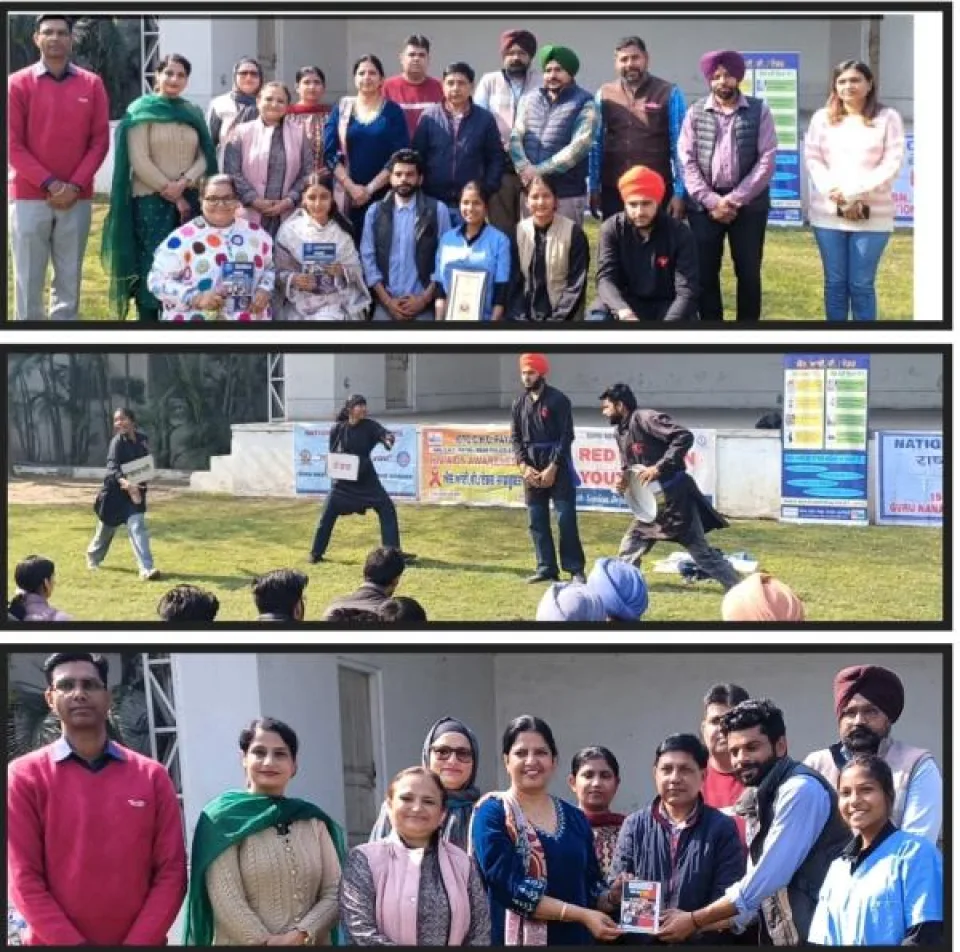 Doraha: February 18 (Amrish Anand) Today at Guru Nanak National College, Doraha, a street play was organized under the awareness campaign on AIDS and HIV run by the Punjab State AIDS Control Society. This event was conducted by the college's Red Ribbon Club and NSS, in collaboration with CHC Payal.Providing details about the event, College Principal Dr. Sarvjeet Kaur Brar stated that the awareness activity was carried out under the leadership of Dean of Student Activities, Dr. Lovleen Bains. A team led by Civil Surgeon Dr. Pradeep Mohindra and SMO Payal Dr. Harvinder Singh from CHC Payal presented a street play to raise awareness among college students about AIDS.Following the play, Homeopathy Dispenser Mr. Jaswinder Singh provided detailed information to students regarding the causes, symptoms, and preventive measures against AIDS and HIV.On this occasion, the college honored the street play team and the entire health department team with commemorative tokens. The event was hosted by Dr. Lovleen Bains.Among those present were Counselor Mrs. Amanpreet Kaur, Link Worker Mrs. Sukhwinder Kaur, MLT Mr. Shekhar, Professor Ranjit Kaur, Professor Amandeep Cheema, Professor Nidhi Swaroop, Professor Deepali, Professor Deepika, Dr. Gurpreet Singh, Professor Sandeep Singh Hundal, Mr. Kulwant Singh, Mr. Jarnail Singh, and Mr. Gurpreet Singh (Lab).For the successful organization of this activity, the college management committee officials, members, and Principal Dr. Sarvjeet Kaur Brar congratulated the faculty members and students involved.