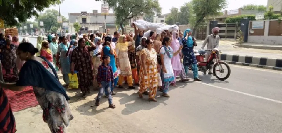 ਤਲਵੰਡੀ ਸਾਬੋ, 2 ਅਕਤੂਬਰ (ਗੁਰਜੰਟ ਸਿੰਘ ਨਥੇਹਾ)- ਆਲ ਪੰਜਾਬ ਆਂਗਣਵਾੜੀ ਮੁਲਾਜ਼ਮ ਯੂਨੀਅਨ ਬਲਾਕ ਤਲਵੰਡੀ ਸਾਬੋ ਵੱਲੋਂ ਯੂਨੀਅਨ ਦੇ ਕੌਮੀ ਪ੍ਰਧਾਨ ਹਰਗੋਬਿੰਦ ਕੌਰ ਦੇ ਸੱਦੇ ਤੇ ਅੱਜ ਆਂਗਨਵਾੜੀ ਦੇ ਸਥਾਪਨਾ ਦਿਵਸ ਮੌਕੇ ਪੰਜਾਬ ਸਰਕਾਰ ਦੀਆਂ ਮਾੜੀਆਂ ਨੀਤੀਆਂ ਦੇ ਖ਼ਿਲਾਫ਼ ਸਰਕਾਰ ਦੀ ਅਰਥੀ ਸਾੜ ਕੇ ਬਲਾਕ ਪੱਧਰੀ ਰੋਸ ਪ੍ਰਦਰਸ਼ਨ ਕੀਤਾ ਗਿਆ ਜਿਸ ਵਿਚ ਵੱਡੀ ਗਿਣਤੀ ਵਿੱਚ ਇਕੱਤਰ ਹੋਈਆਂ ਆਂਗਣਵਾੜੀ ਵਰਕਰਾਂ ਅਤੇ ਹੈਲਪਰਾਂ ਨੇ ਪੰਜਾਬ ਸਰਕਾਰ ਵਿਰੁੱਧ ਜ਼ੋਰਦਾਰ ਨਾਅਰੇਬਾਜ਼ੀ ਕੀਤੀ। ਇਸ ਮੌਕੇ ਯੂਨੀਅਨ ਦੀ ਬਲਾਕ ਪ੍ਰਧਾਨ ਸਤਵੰਤ ਕੌਰ ਤੇ ਇੰਦਰਜੀਤ ਕੌਰ ਰਾਮਾਂ ਨੇ ਕਿਹਾ ਕਿ ਪੰਜਾਬ ਸਰਕਾਰ ਵਰਕਰਾਂ ਅਤੇ ਹੈਲਪਰਾਂ ਨੂੰ ਉਨ੍ਹਾਂ ਦਾ ਬਣਦਾ ਹੱਕ ਨਹੀਂ ਦੇ ਰਹੀ ਜਿਸ ਕਰਕੇ ਉਨ੍ਹਾਂ ਨੂੰ ਸੰਘਰਸ਼ ਕਰਨ ਲਈ ਮਜਬੂਰ ਹੋਣਾ ਪੈ ਰਿਹਾ ਹੈ। ਉਨ੍ਹਾਂ ਦੱਸਿਆ ਕਿ ਲਗਭਗ ਇੱਕ ਸਾਲ ਪਹਿਲਾਂ ਕੇਂਦਰ ਸਰਕਾਰ ਨੇ ਵਰਕਰਾਂ ਤੇ ਹੈਲਪਰਾਂ ਦੇ ਮਾਣ ਭੱਤੇ ਵਿੱਚ ਕਰਮਵਾਰ 1500 ਰੁਪਏ ਅਤੇ 750 ਰੁਪਏ ਦੀ ਥਾਂ 450 ਰੁਪਏ ਹੀ ਦਿੱਤੇ ਤੇ ਆਪਣੇ ਹਿੱਸੇ ਦੇ ਪੈਸੇ ਨਹੀਂ ਦਿੱਤੇ ਪੋਸ਼ਣ ਅਭਿਆਨ ਦੇ ਪੈਸੇ ਵੀ ਪਿਛਲੇ ਦੋ ਸਾਲਾਂ ਤੋਂ ਨਹੀਂ ਦਿੱਤੇ ਗਏ ਹੋਰ ਵੀ ਕਈ ਫੰਡ ਰੋਕੇ ਹੋਏ ਹਨ। ਜਥੇਬੰਦੀ ਵੱਲੋਂ ਪੰਜਾਬ ਸਰਕਾਰ ਦੇ ਨੁਮਾਇੰਦਿਆਂ ਰਾਹੀਂ ਵਿਭਾਗ ਦੀ ਮੰਤਰੀ ਅਤੇ ਡਾਇਰੈਕਟਰ ਨਾਲ ਮੀਟਿੰਗਾਂ ਕੀਤੀਆਂ ਗਈਆਂ ਹਨ ਤੇ ਸਰਕਾਰ ਦੇ ਨਾਮ ਮੰਗ ਪੱਤਰ ਭੇਜੇ ਗਏ ਪਰ ਪੰਜਾਬ ਸਰਕਾਰ ਟੱਸ ਤੋਂ ਮੱਸ ਨਹੀਂ ਹੋਈ ਜਿਸ ਕਰਕੇ ਸੂਬੇ ਭਰ ਦੀਆਂ 54 ਹਜ਼ਾਰ ਵਰਕਰਾਂ ਤੇ ਹੈਲਪਰਾਂ ਵਿਚ ਗ਼ੁੱਸੇ ਦੀ ਲਹਿਰ ਹੈ। ਰੋਸ ਪ੍ਰਦਰਸ਼ਨ ਦੌਰਾਨ ਬੁਲਾਰਿਆਂ ਨੇ ਦੱਸਿਆ ਕਿ ਜਥੇਬੰਦੀ ਵੱਲੋਂ ਚਾਰ ਵੱਡੀਆਂ ਰੋਸ ਰੈਲੀਆਂ ਉਨ੍ਹਾਂ ਹਲਕਿਆਂ ਵਿੱਚ ਕੀਤੀਆਂ ਜਾ ਰਹੀਆਂ ਹਨ ਜਿੱਥੇ ਵਿਧਾਨ ਸਭਾ ਦੀਆਂ ਜਿਮਨੀ ਚੋਣਾਂ ਹੋ ਰਹੀਆਂ ਹਨ ਇਹ ਰੈਲੀਆਂ ਜਲਾਲਾਬਾਦ, ਦਾਖਾ, ਫਗਵਾੜਾ ਤੇ ਮੁਕੇਰੀਆਂ ਵਿਖੇ ਕੀਤੀਆਂ ਜਾਣਗੀਆਂ ਅਤੇ ਲੋਕਾਂ ਨੂੰ ਪੰਜਾਬ ਸਰਕਾਰ ਦੀ ਮਾੜੀ ਕਾਰਗੁਜ਼ਾਰੀ ਬਾਰੇ ਦੱਸਿਆ ਜਾਵੇਗਾ। ਇਸ ਦੌਰਾਨ ਉੱਚ ਅਧਿਕਾਰੀਆਂ ਰਾਹੀਂ ਸਰਕਾਰ ਦੇ ਨਾਮ ਮੰਗ ਪੱਤਰ ਭੇਜਿਆ ਗਿਆ।ਇਸ ਮੌਕੇ ਸੁਰਜੀਤ ਕੌਰ ਬੰਗੀ, ਪਰਮਜੀਤ ਕੌਰ ਤਲਵੰਡੀ ਸਾਬੋ , ਬਲਵਿੰਦਰ ਕੌਰ ਜੱਜਲ, ਗੁਰਵਿੰਦਰ ਕੌਰ ਨਥੇਹਾ, ਅੰਮ੍ਰਿਤਪਾਲ ਕੌਰ ਬੰਗੀ, ਵੀਰਪਾਲ ਕੌਰ ਤਲਵੰਡੀ ਮਨਜੀਤ ਕੌਰ ਕਲਾਲਵਾਲਾ, ਕਰਮਜੀਤ ਕੌਰ ਲਾਲੇਆਣਾ, ਇੰਦਰਜੀਤ ਕੌਰ ਰਾਮਾਂ, ਮਨਜੀਤ ਕੌਰ ਸੀਂਗੋ, ਬਲਜੀਤ ਕੌਰ ਲਹਿਰੀ, ਬਲਜੀਤ ਕੌਰ ਜੱਜਲ, ਬਲਵਿੰਦਰ ਕੌਰ ਜਾਜਲ, ਸਵਰਨਜੀਤ ਕੌਰ ਸ਼ੇਖਪੁਰਾ, ਸੁਖਜੀਤ ਕੌਰ ਲਾ ਸਮੇਤ ਵਰਕਰਾਂ ਤੇ ਹੈਲਪਰਾਂ ਹਾਜ਼ਰ ਸਨ।