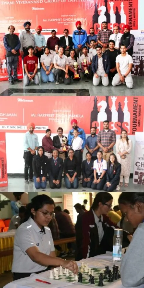 ਰਾਜਪੁਰਾ,12 ਨਵੰਬਰ(ਰਾਜੇਸ਼ ਡਾਹਰਾ)ਸਵਾਮੀ ਵਿਵੇਕਾਨੰਦ ਇੰਜੀਨੀਅਰਿੰਗ ਕਾਲਜ ਬਨੂੰੜ ਵਿਖੇ ਆਈ. ਕੇ. ਜੀ. ਪੀ. ਟੀ. ਯੂ. ਜਲੰਧਰ ਵੱਲੋਂ ਦੋ ਦਿਨਾਂ ਸ਼ਤਰੰਜ ਟੂਰਨਾਮੈਂਟ 2022-23 ਦੀ ਅੱਜ ਸਮਾਪਤੀ ਹੋਈ, ਦੋ ਦਿਨਾਂ ਦੇ ਇਸ ਸ਼ਤਰੰਜ ਮੁਕਾਬਲੇ ਵਿੱਚ ਲੜਕਿਆ ਵਿੱਚੋ ਸੀ.ਈ.ਸੀ. ਲਾਂਡਰਾਂ ਨੇ ਪਹਿਲਾਂ,ਆਈ. ਕੇ. ਜੀ. ਪੀ. ਟੀ. ਯੂ. ਕਪੂਰਥਲਾ ਨੇ ਦੂਜਾ ਅਤੇ ਡੀ. ਏ. ਵੀ. ਇੰਜੀਨੀਅਰਿੰਗ ਕਾਲਜ ਜਲੰਧਰ ਨੇ ਤੀਜਾ ਸਥਾਨ ਹਾਸਲ ਕੀਤਾ। ਲੜਕੀਆਂ ਦੇ ਮੁਕਾਬਲੇ ਵਿੱਚ ਪਹਿਲਾ ਡੀ. ਏ. ਵੀ. ਇੰਜੀਨੀਅਰਿੰਗ ਕਾਲਜ ਜਲੰਧਰ, ਦੂਜਾ ਗੁਰੂ ਨਾਨਕ ਦੇਵ ਇੰਜੀਨੀਅਰਿੰਗ ਕਾਲਜ ਲੁਧਿਆਣਾ ਅਤੇ ਤੀਜਾ ਸਥਾਨ ਸਵਾਮੀ ਵਿਵੇਕਾਨੰਦ ਇੰਜੀਨੀਅਰਿੰਗ ਕਾਲਜ ਬਨੂੰੜ ਨੇ ਹਾਸਿਲ ਕੀਤਾ।ਅੱਜ ਦੇ ਇਸ ਚੱਲੇ ਰੋਮਾਂਚਕ ਮੁਕਬਲੇ ਵਿੱਚ ਖਿਡਾਰੀਆਂ ਨੇ ਆਪਣੇ ਤੇਜ਼ ਦਿਮਾਗ਼ ਦਾ ਹੁਨਰ ਵਿਖਾਇਆ।ਅੱਜ ਦੇ ਇਸ ਟੂਰਨਾਮੈਟ ਦੇ ਮੁੱਖ ਮਹਿਮਾਨ ਸ. ਹਰਪ੍ਰੀਤ ਸਿੰਘ ਮੰਡਲਾਂ ਆਈ. ਐਸ. ਐਸ. ਐਫ. ਸ਼ਾਰਟ ਗੰਨ ਕੋਚ, ਇੰਡੀਆ, ਡਾ. ਚੰਦਰ ਪਰਕਾਸ਼ ਆਈ. ਕੇ. ਜੀ. ਪੀ. ਟੀ. ਯੂ. ਜਲੰਧਰ, ਸਪੋਰਟਸ ਇੰਚਾਰਜ ਨੂੰ ਕਾਲਜ ਦੇ ਚੈਅਰਮੈਨ ਸ਼੍ਰੀ ਅਸ਼ਵਨੀ ਗਰਗ ਅਤੇ ਪ੍ਰੈਜ਼ੀਡੈਂਟ ਸ਼੍ਰੀ ਅਸ਼ੋਕ ਗਰਗ ਨੇ "ਜੀ ਆਇਆ ਆਖਿਆ" ਅਤੇ ਸਨਮਾਨਿਤ ਚਿੰਨ੍ਹ ਭੇਂਟ ਕੀਤਾ। ਇਸ ਮੌਕੇ ਆਈ. ਕੇ. ਜੀ. ਪੀ. ਟੀ. ਯੂ. ਆਬਜ਼ਰਵਰ ਡਾ.ਅਮਰਪ੍ਰੀਤ ਸਿੰਘ ,ਪ੍ਰਿੰਸੀਪਲ ਸ਼੍ਰੀ ਪ੍ਰਤੀਕ ਗਰਗ,ਸਵਾਈਟ ਸਪੋਰਟਸ ਡਿਪਾਰਟਮੇਂਟ ਹੈਡ ਕੁਲਦੀਪ ਸਿੰਘ ਬਰਾੜ, ਡੀ. ਪੀ. ਈ. ਪਲਵਿੰਦਰ ਸਿੰਘ, ਸ. ਤਲਵਿੰਦਰ ਸਿੰਘ ਰੰਧਾਵਾ,ਅਰਬਿਟਰ ਆਈ. ਕੇ. ਜੀ. ਪੀ. ਟੀ. ਯੂ. ਸ਼੍ਰੀ ਵਰੁਣ ਕੁਮਾਰ, ਸੰਜੀਵ ਕੁਮਾਰ ਸ਼ਰਮਾ ਓਹਨਾਂ ਤੋਂ ਇਲਾਵਾ ਵੱਖ ਵੱਖ ਟੀਮਾਂ ਦੇ ਕੋਚ ਅਤੇ ਸਟਾਫ਼ ਹਾਜ਼ਰ ਸਨ। ਮੁੱਖ ਮਹਿਮਾਨ ਅਤੇ ਕਾਲਜ ਦੀ ਮਨੇਜਮੇਂਟ ਨੇ ਜਿੱਤੇ ਹੋਏ ਖਿਡਾਰੀਆਂ ਨੂੰ ਮੈਡਲ ਤੇ ਟਰਾਫੀਆਂ ਨਾਲ ਸਨਮਾਨਿਤ ਕੀਤਾ।
