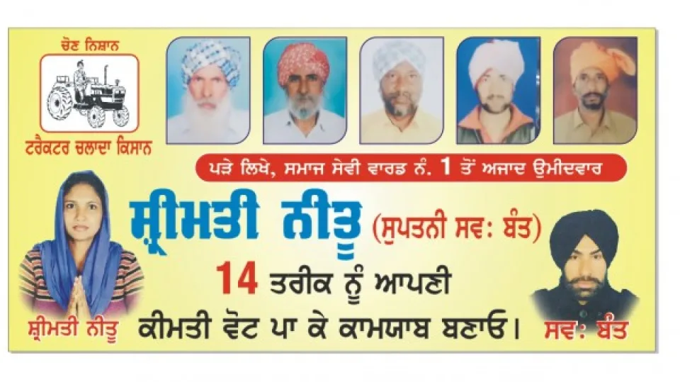 ਵਾਰਡ ਨੰਬਰ 1 ਤੋਂ ਆਜ਼ਾਦ ਉਮੀਦਵਾਰ ਸ਼੍ਰੀਮਤੀ ਨੀਤੂ ਨੂੰ ਮਿਲ ਰਿਹਾ ਭਰਵਾਂ ਹੁੰਗਾਰਾ