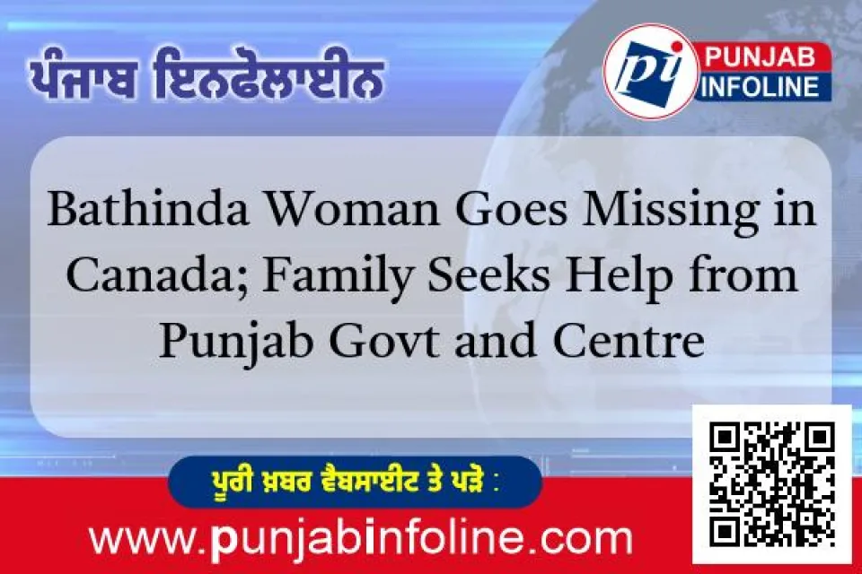 ਬਠਿੰਡਾ ਦੀ ਮਹਿਲਾ ਕੈਨੇਡਾ 'ਚ ਲਾਪਤਾ; ਪਰਿਵਾਰ ਨੇ ਪੰਜਾਬ ਸਰਕਾਰ ਅਤੇ ਕੇਂਦਰ ਤੋਂ ਮਦਦ ਦੀ ਮੰਗ ਕੀਤੀ